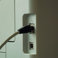Verifica que el cable de red (regularmente es color gris, o gris claro) esté firmemente conectado a la impresora de arrendamiento y que al conectarlo se encienda un led color verde o color ámbar, de igual manera verifica que tu equipo de cómputo tenga el cable de red conectado.